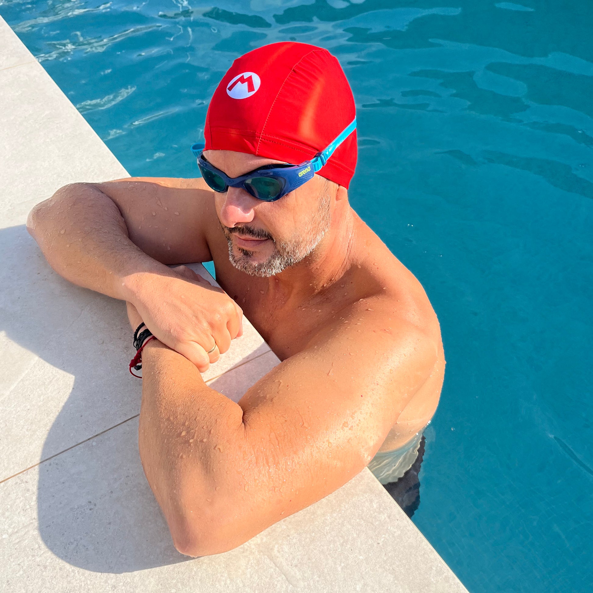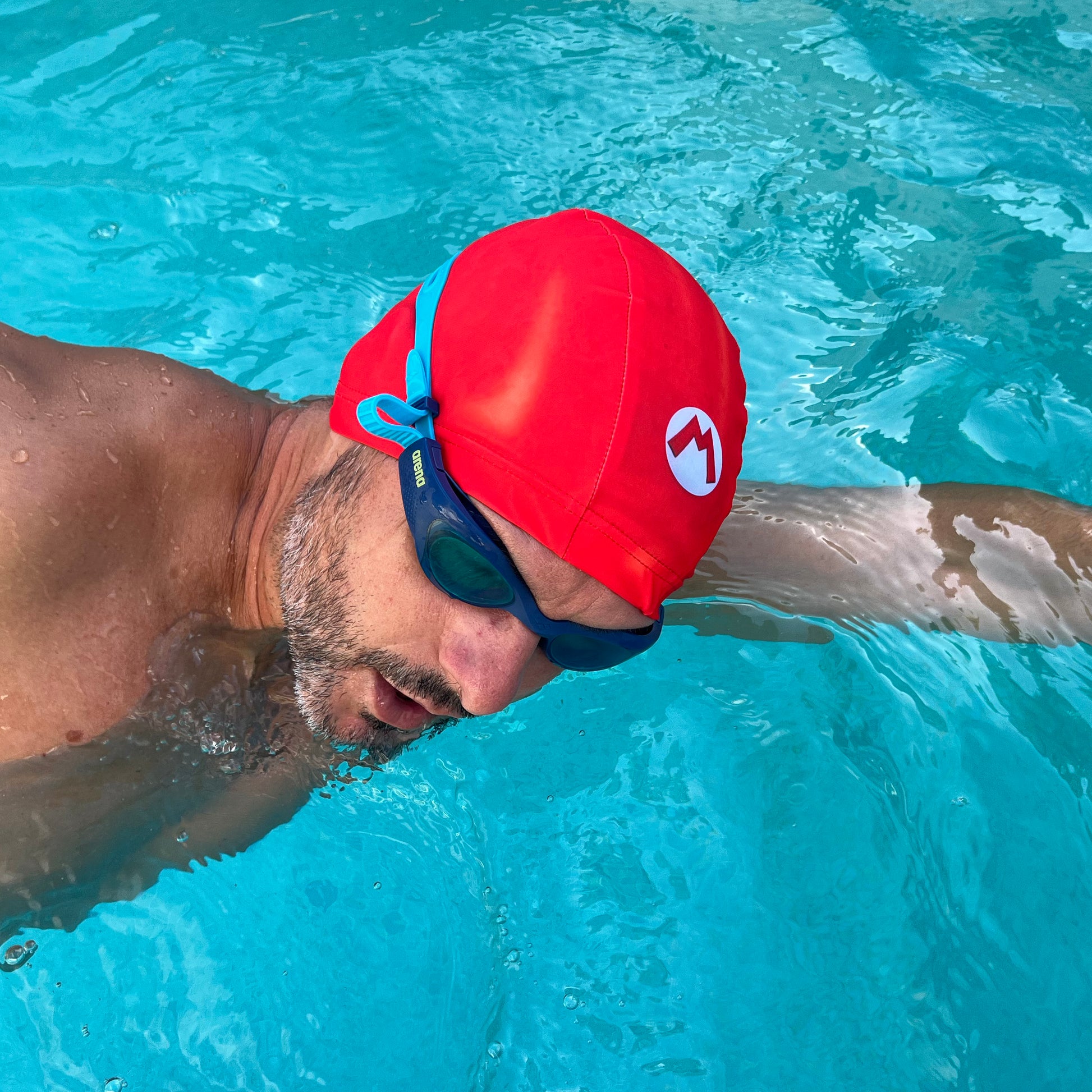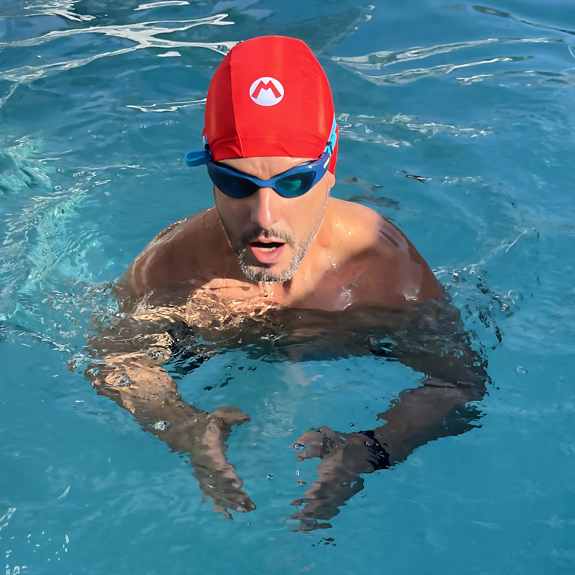 - El fontanero más simpático, se tira a la piscina, para vivir auténticas aventuras en el agua. Gorros ideales para hermanos.